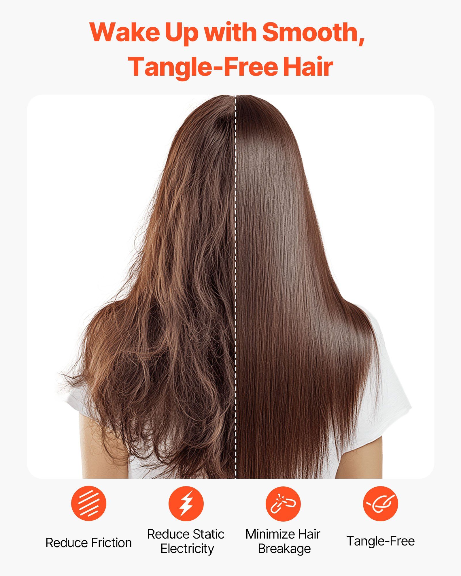The pillowcase has a smooth and soft surface that reduces friction and static while sleeping, helping reduce frizz, avoid breakage and tangles, and leave your hair naturally healthy and shiny.