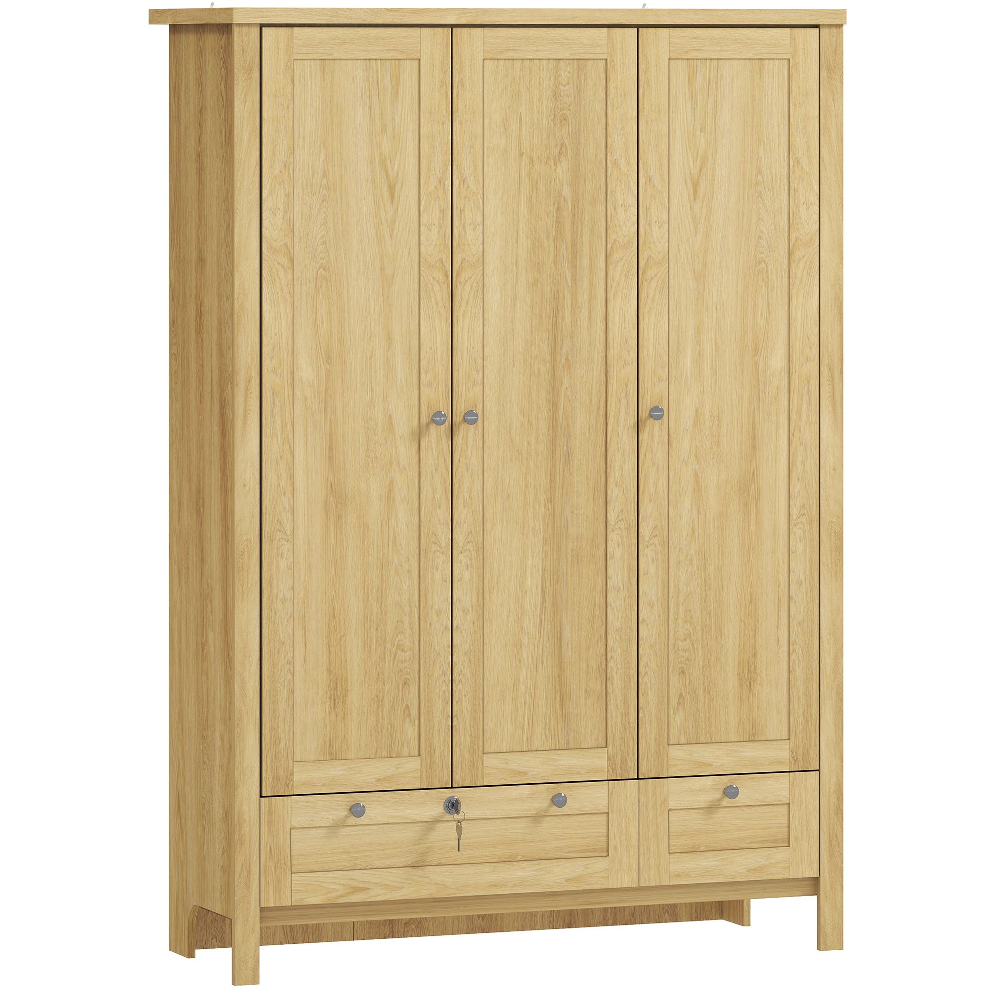 Tired of cluttered closets? This armoire wardrobe closet offers large storage with a spacious hanging area for coats and dresses, three shelves for folded clothes, and two deep drawers for everyday essentials. A lockable drawer keeps personal items secure, while the modern bedroom armoire with shaker-style doors and silver knobs blends into any room.