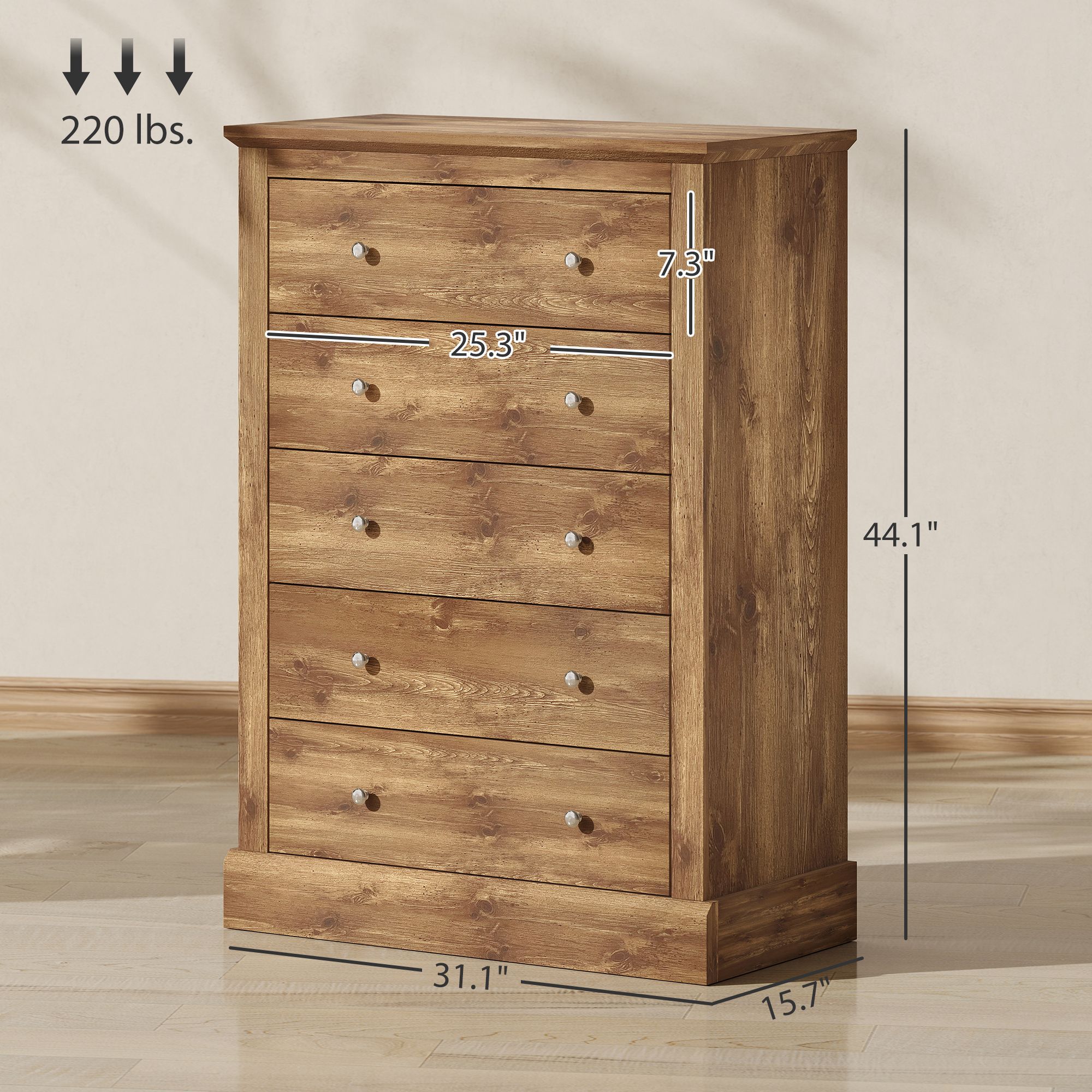 HOMCOM 31" Wide Farmhouse Chest of Drawers with 5 Drawers, Dresser for Bedroom with Wood Top for Living Room, Brown HOMCOM 31" Wide Farmhouse Chest of Drawers with 5 Drawers, Dresser for Bedroom with Wood Top for Living Room, Brown HOMCOM 31" Wide Farmhouse Chest of Drawers with 5 Drawers, Dresser for Bedroom with Wood Top for Living Room, Brown