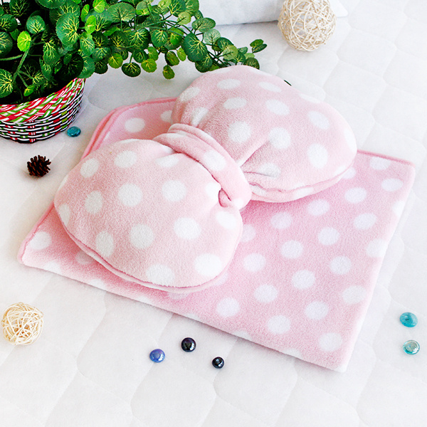 Home > [Pink Bow] Fleece Throw Blanket Pillow Cushion / Travel Pillow Blanket (29.5 by 35.4 inches)