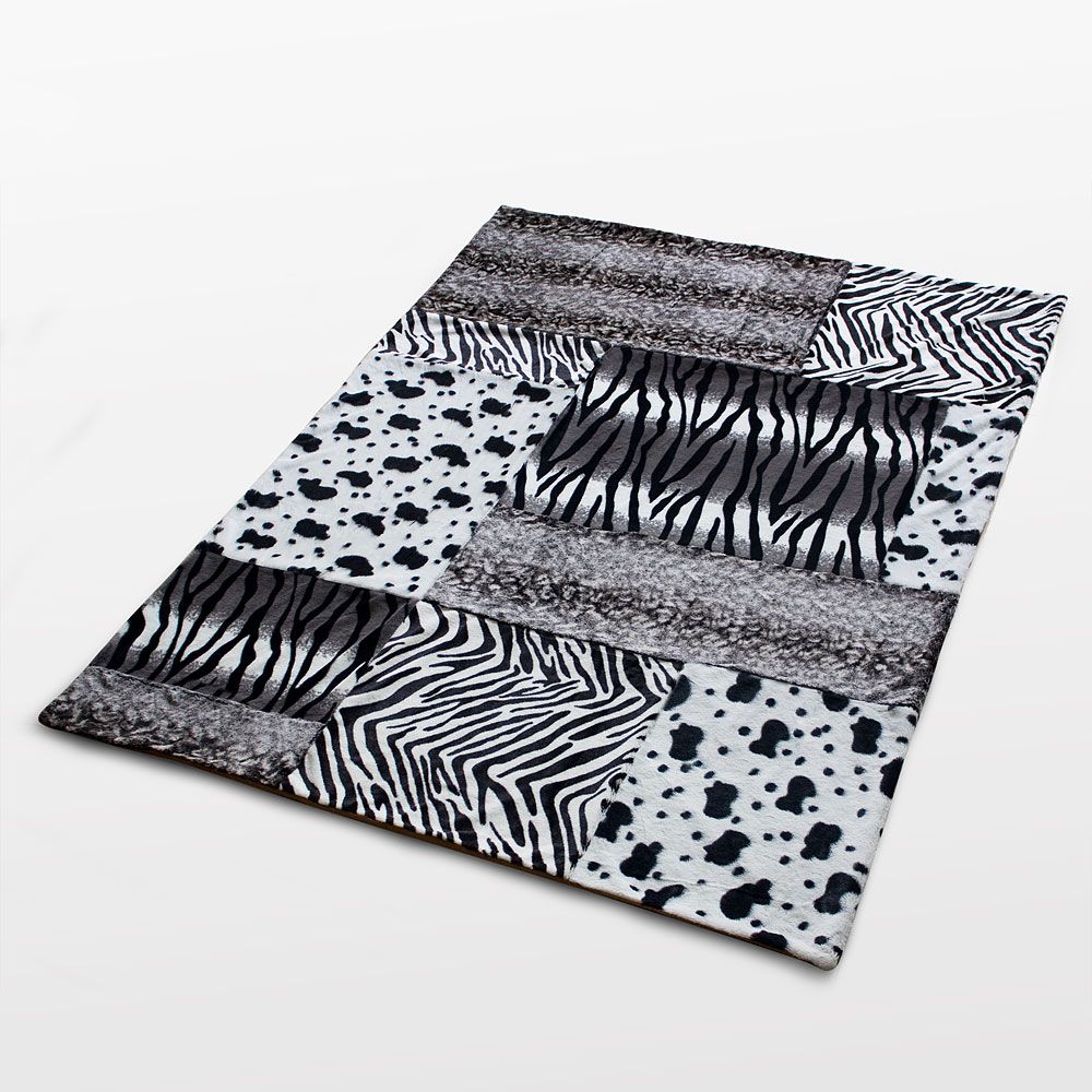This animal skin patchwork throw blanket measures 50 by70 inches. Comfort, warmth and stylish designs.